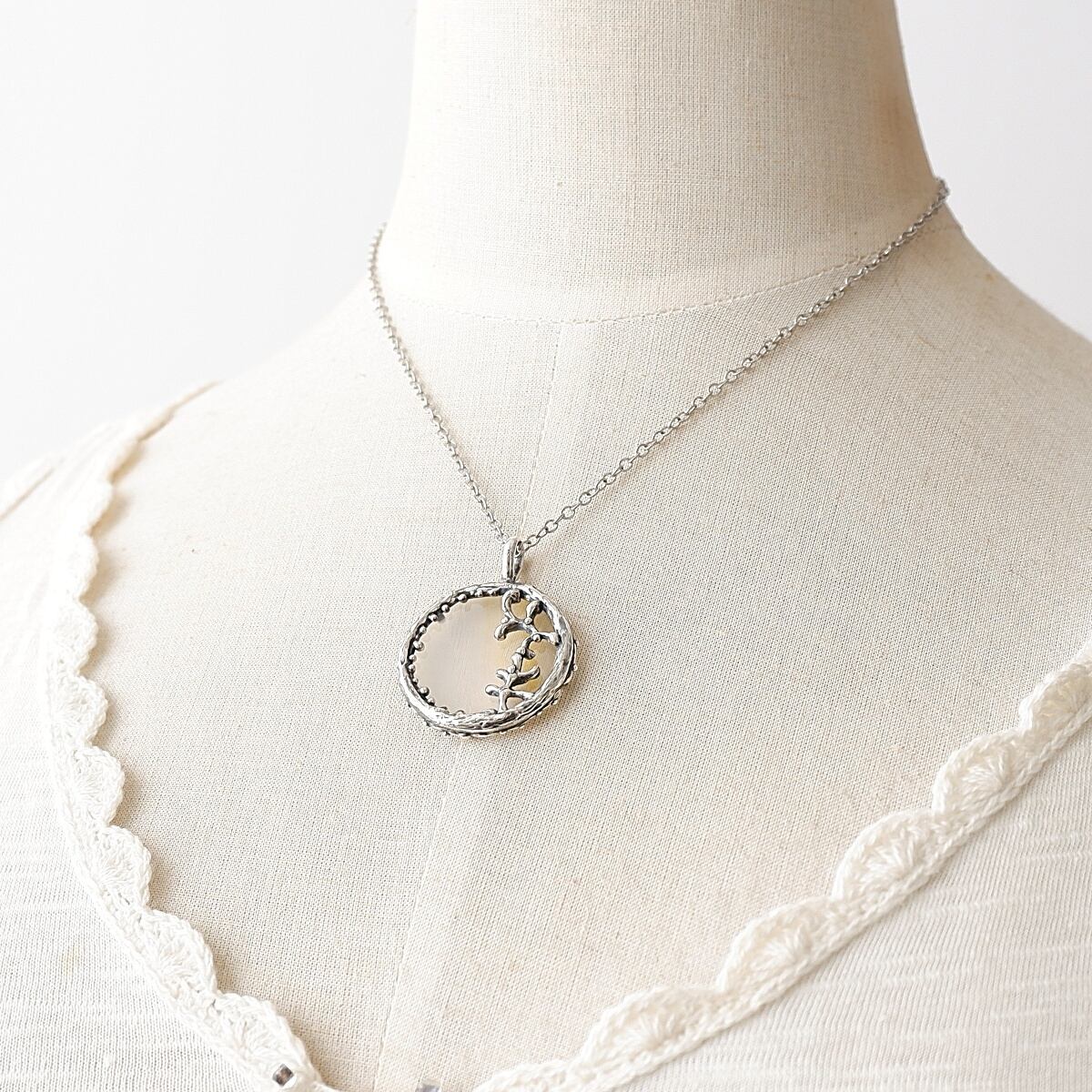 そのため、白っぽいお洋服に重ねて身に着けると、素材によっては色移りする可能性がございます。ご使用の際はご注意ください。