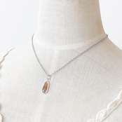淡い紫色のアメジストの中に、金色のカコクセナイトが幻想的に広がる個性的な石を、シンプルなシルバー枠のペンダントに仕上げました。