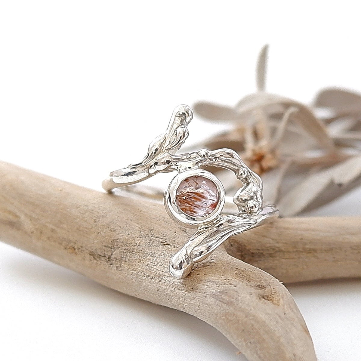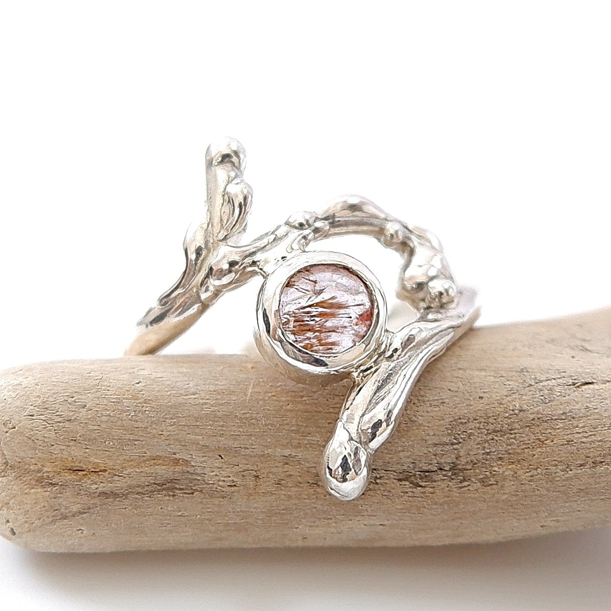 ~個性的な内包物~ カコクセナイトインアメジストのデザインリング 13.5号 天然石アクセサリー 一点物 macari