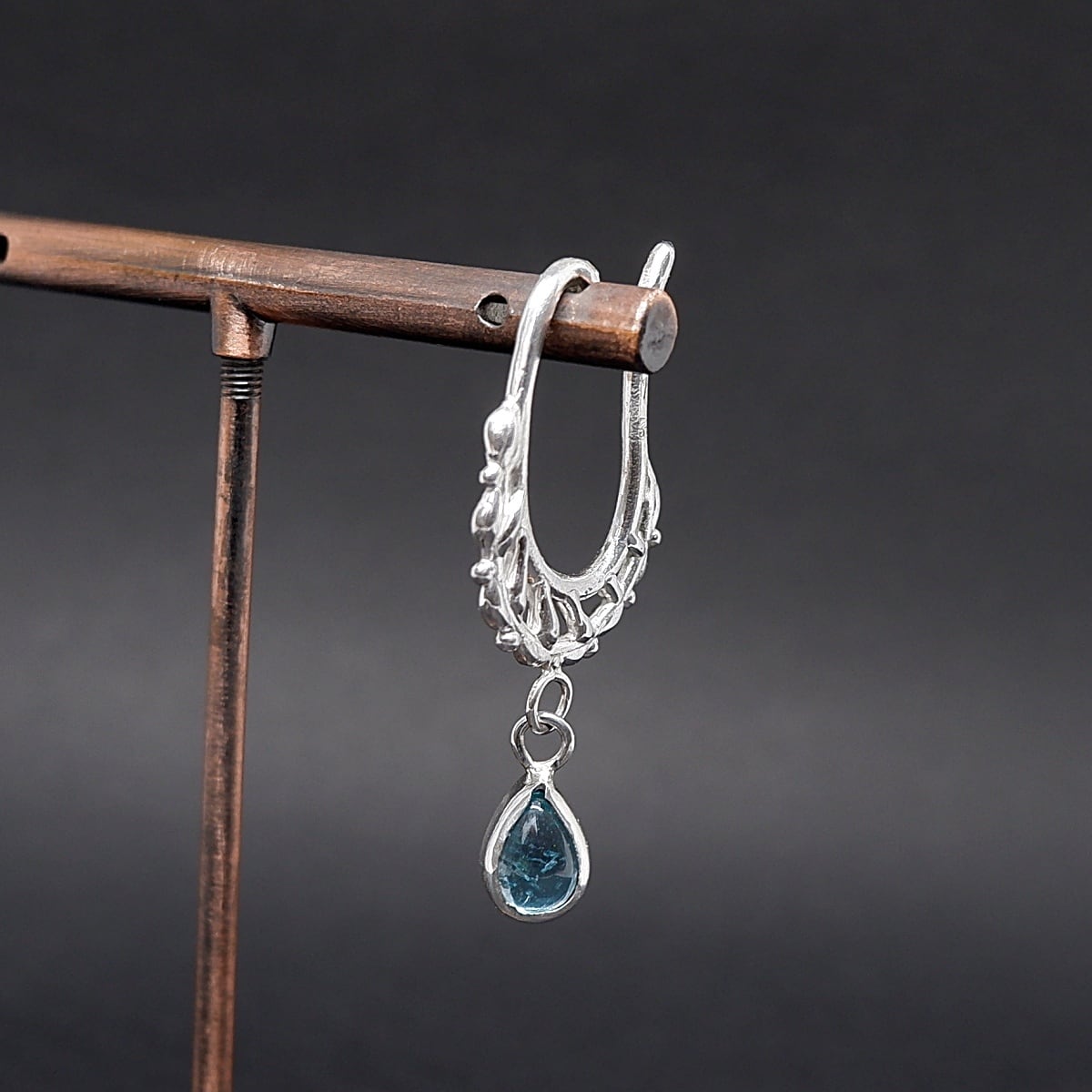 シーグリーンカイヤナイトのデザインイヤーカフ ~深い森の泉~ 天然石アクセサリー 一点物