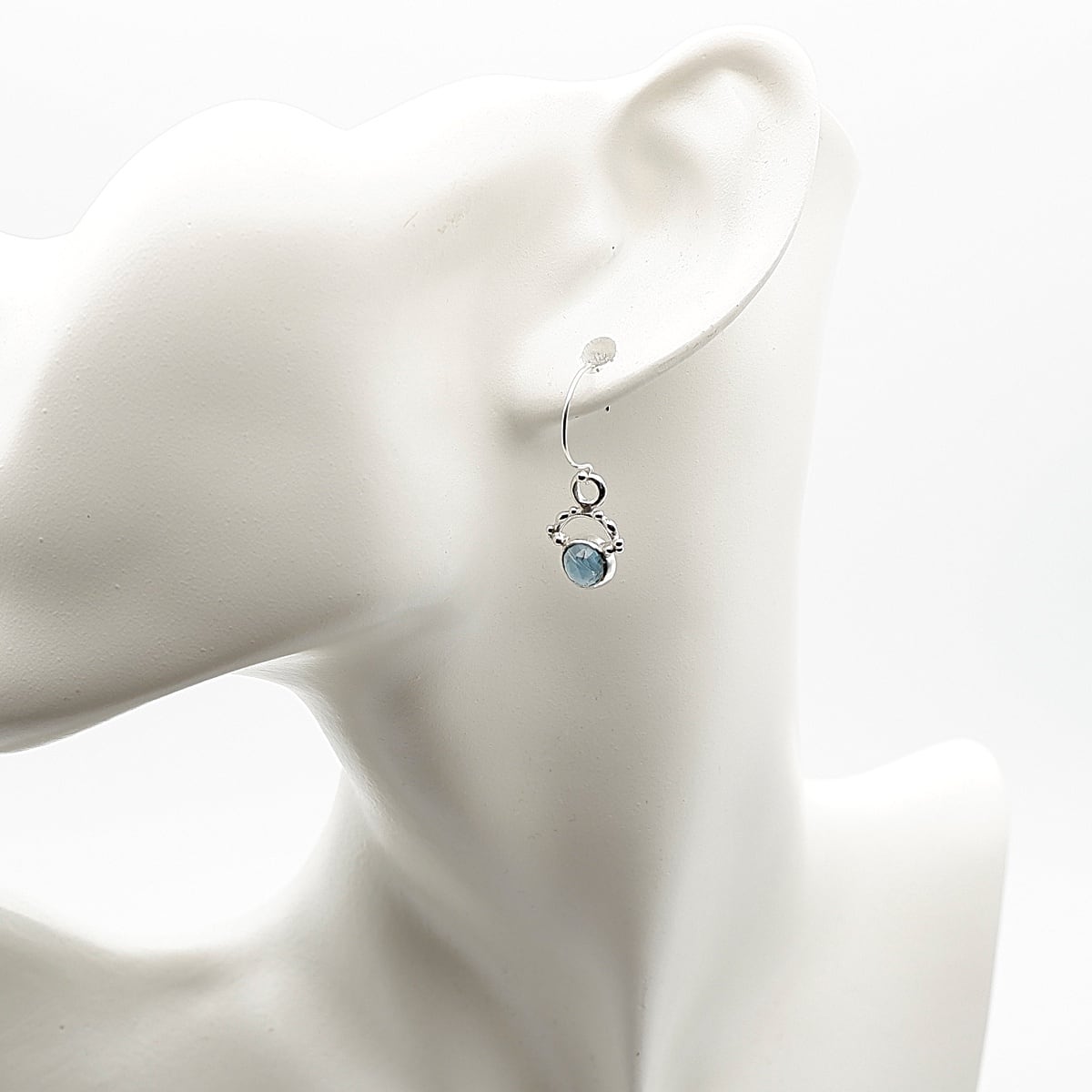 ネオンブルーカイヤナイトのデザインピアス ~黄昏の空に残る青~ 天然石アクセサリー 一点物