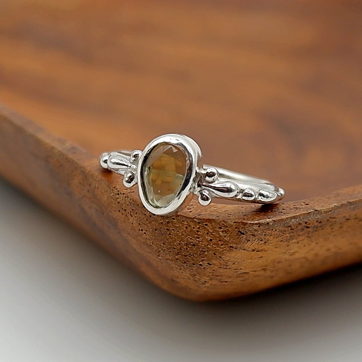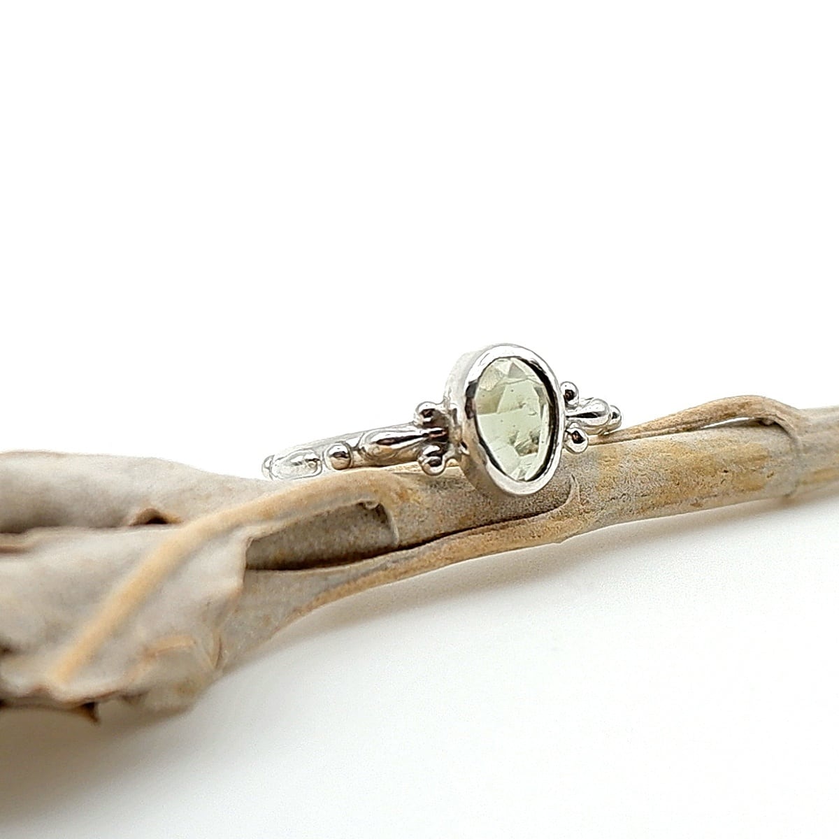 モルダバイトのデザインリング 12.5号 ~宇宙のロマンを秘めた石~ 天然石アクセサリー 一点物 macari