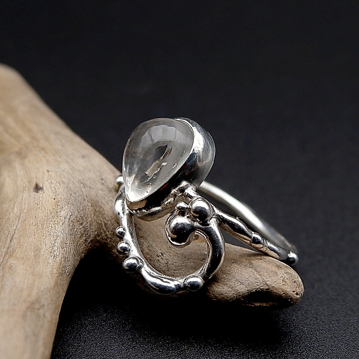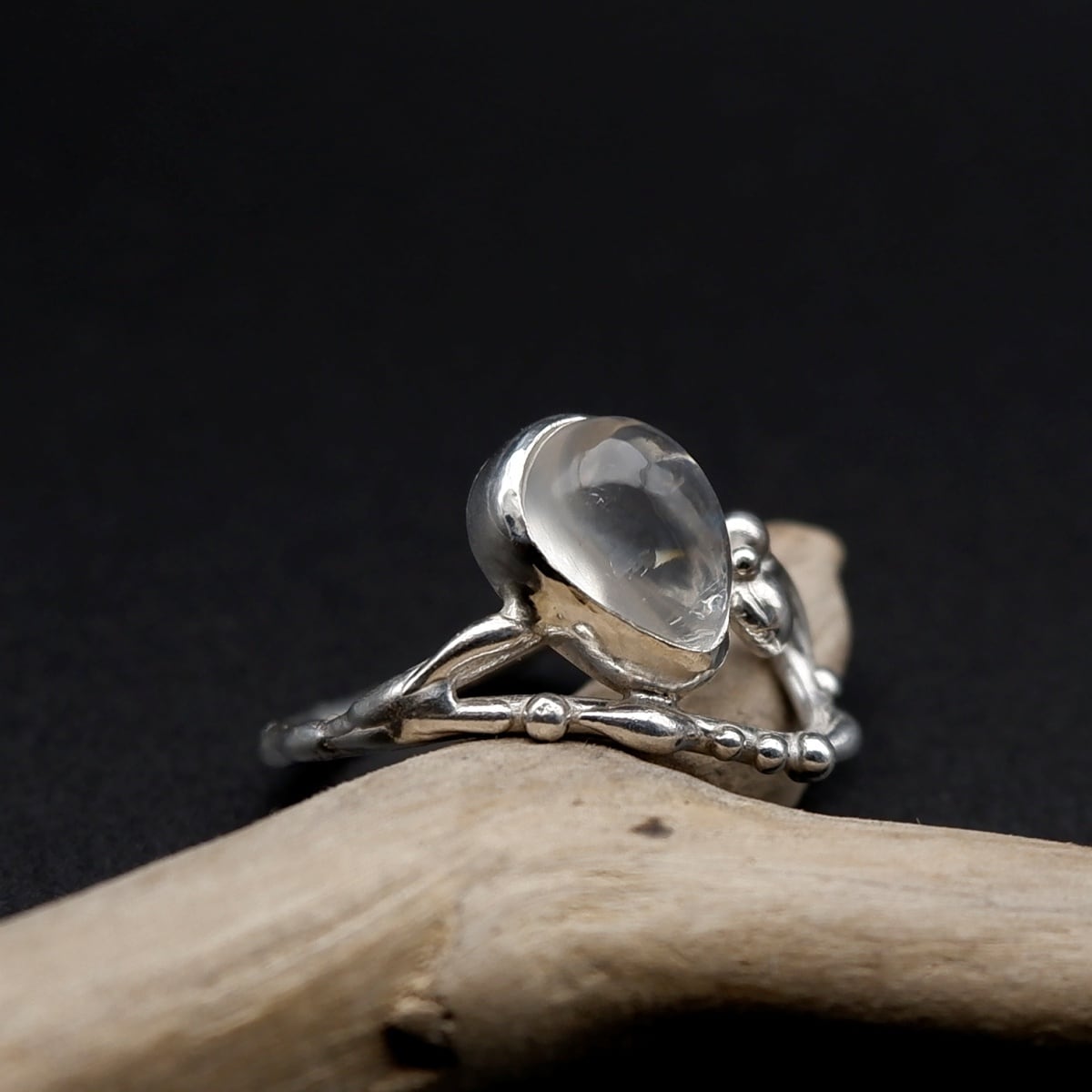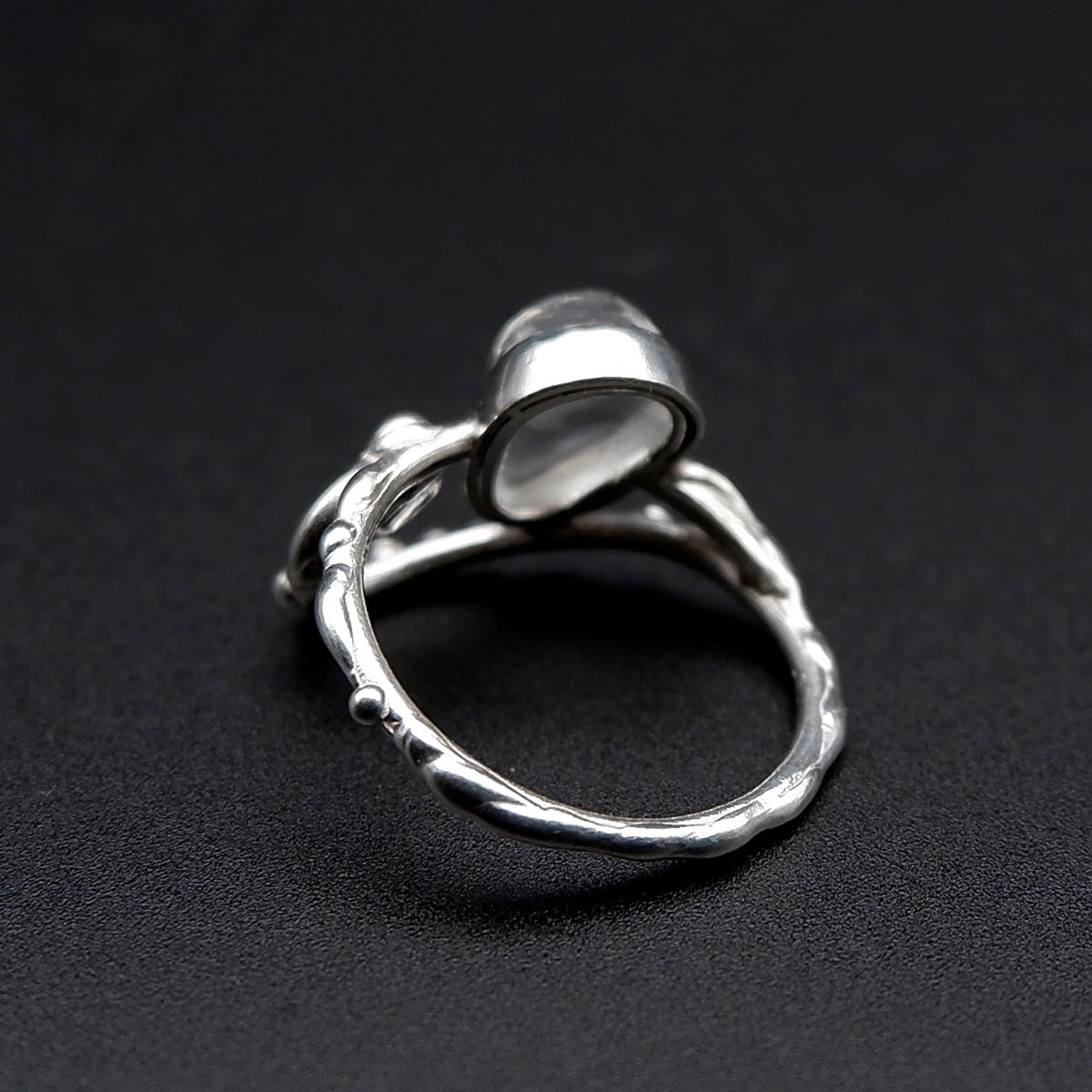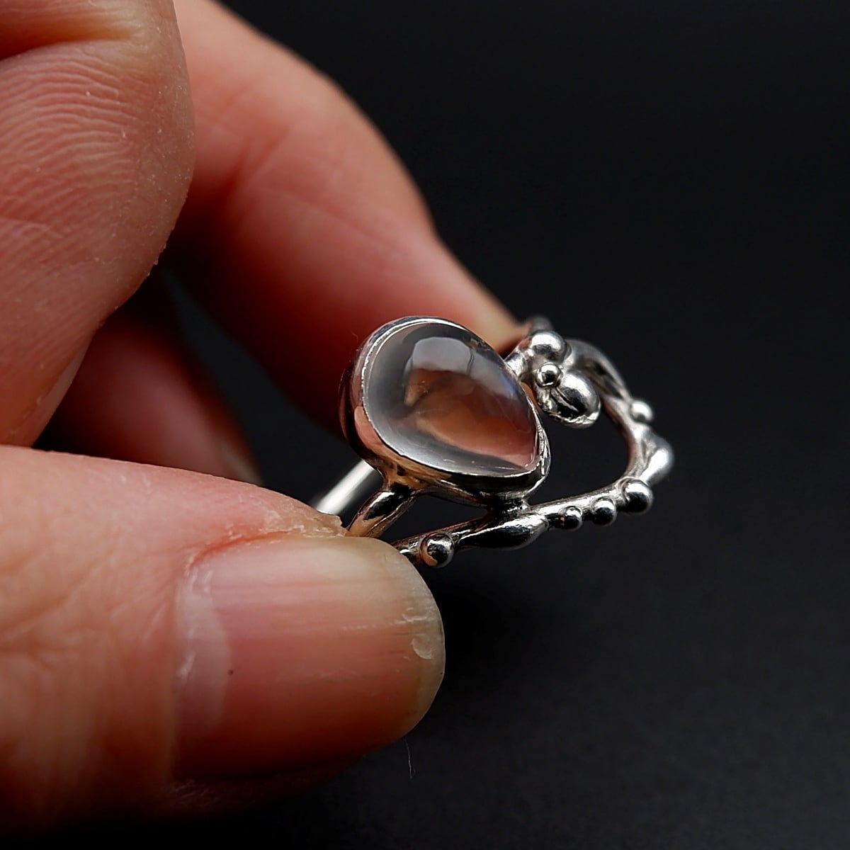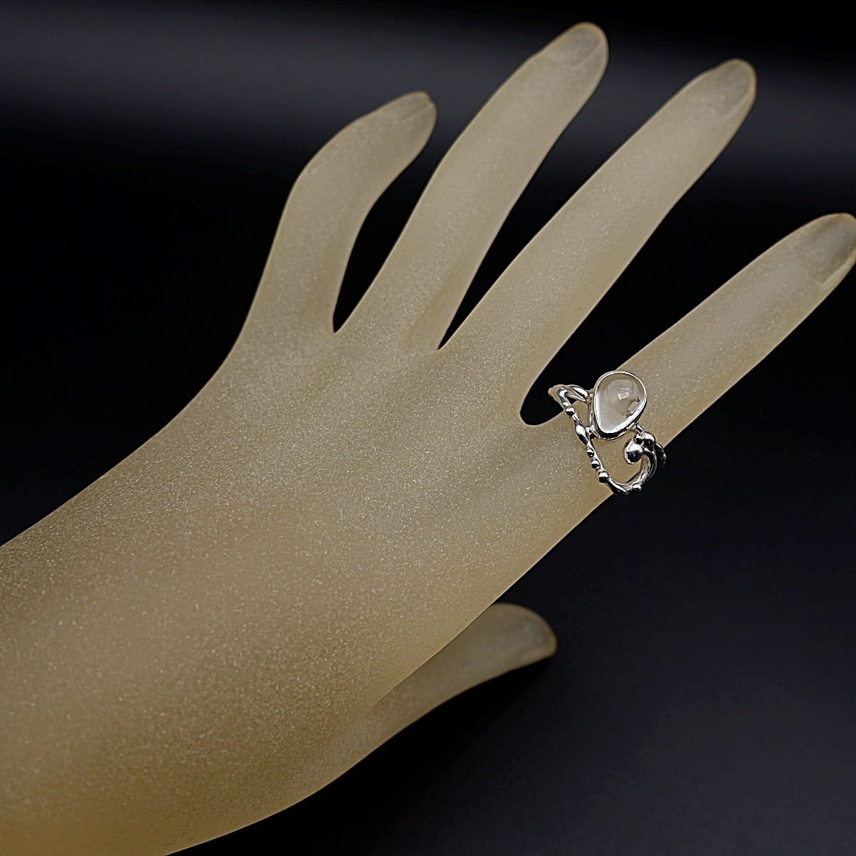 石の内部には天然由来のクラックが見られますが、角度によってやさしい虹色の輝きが現れ、透明感の中に奥行きを感じられます。