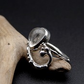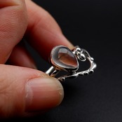 山梨県にある乙女鉱山で産出された水晶原石をカット・研磨し、唐草と粒装飾を組み合わせたデザインのリングに仕立てました。