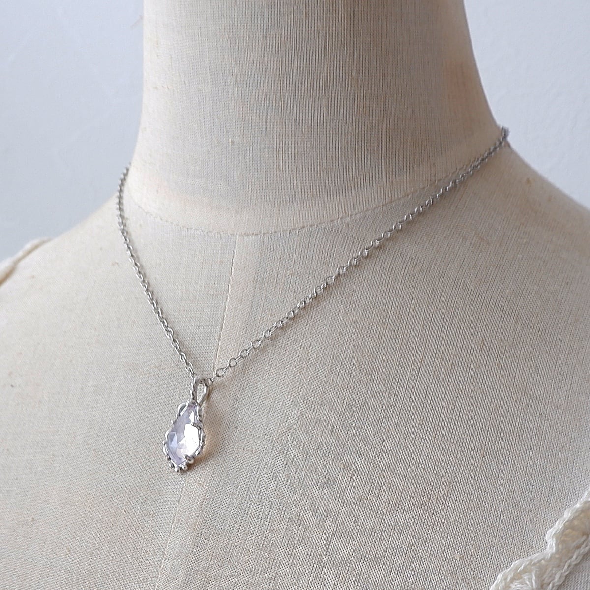 ラベンダークォーツの粒飾りペンダント ~透き通る花弁のような~ 天然石アクセサリー 一点物