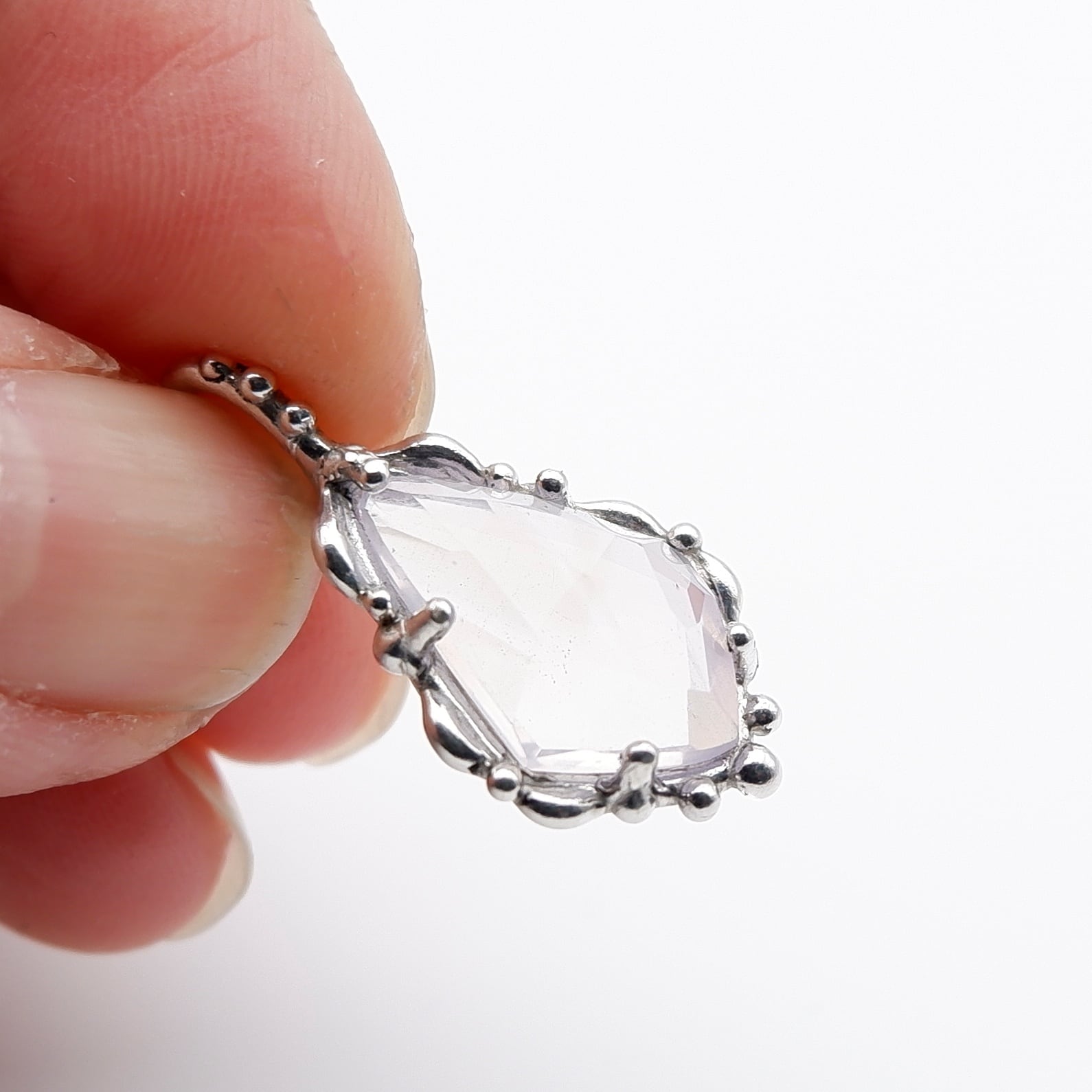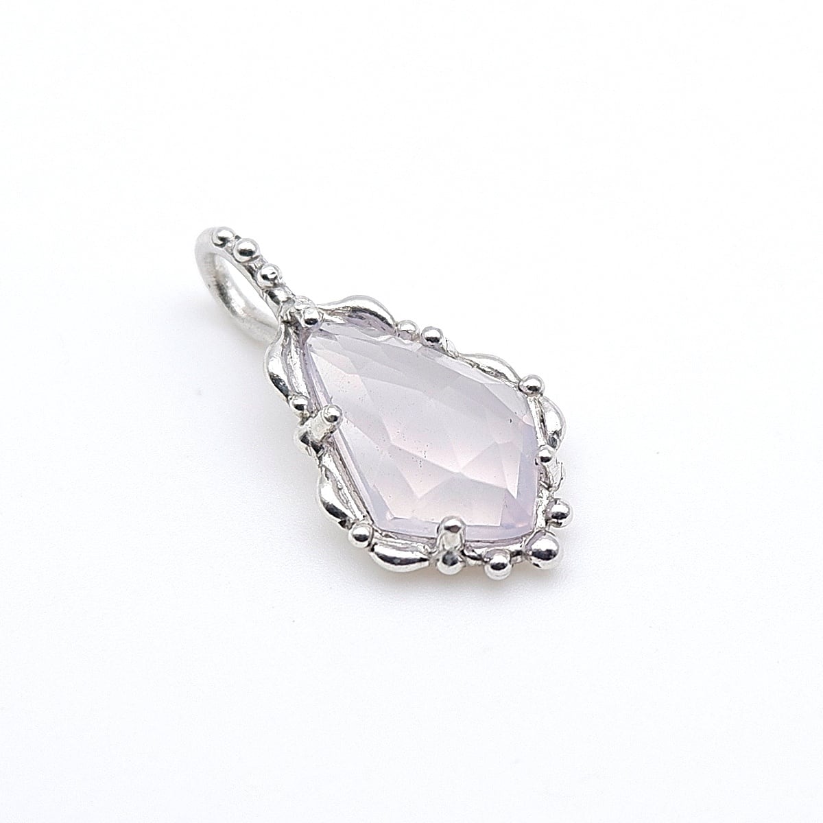 ローズカットを施されたフリーシェイプのラベンダークォーツが、キラキラと繊細な輝きを放ちます。