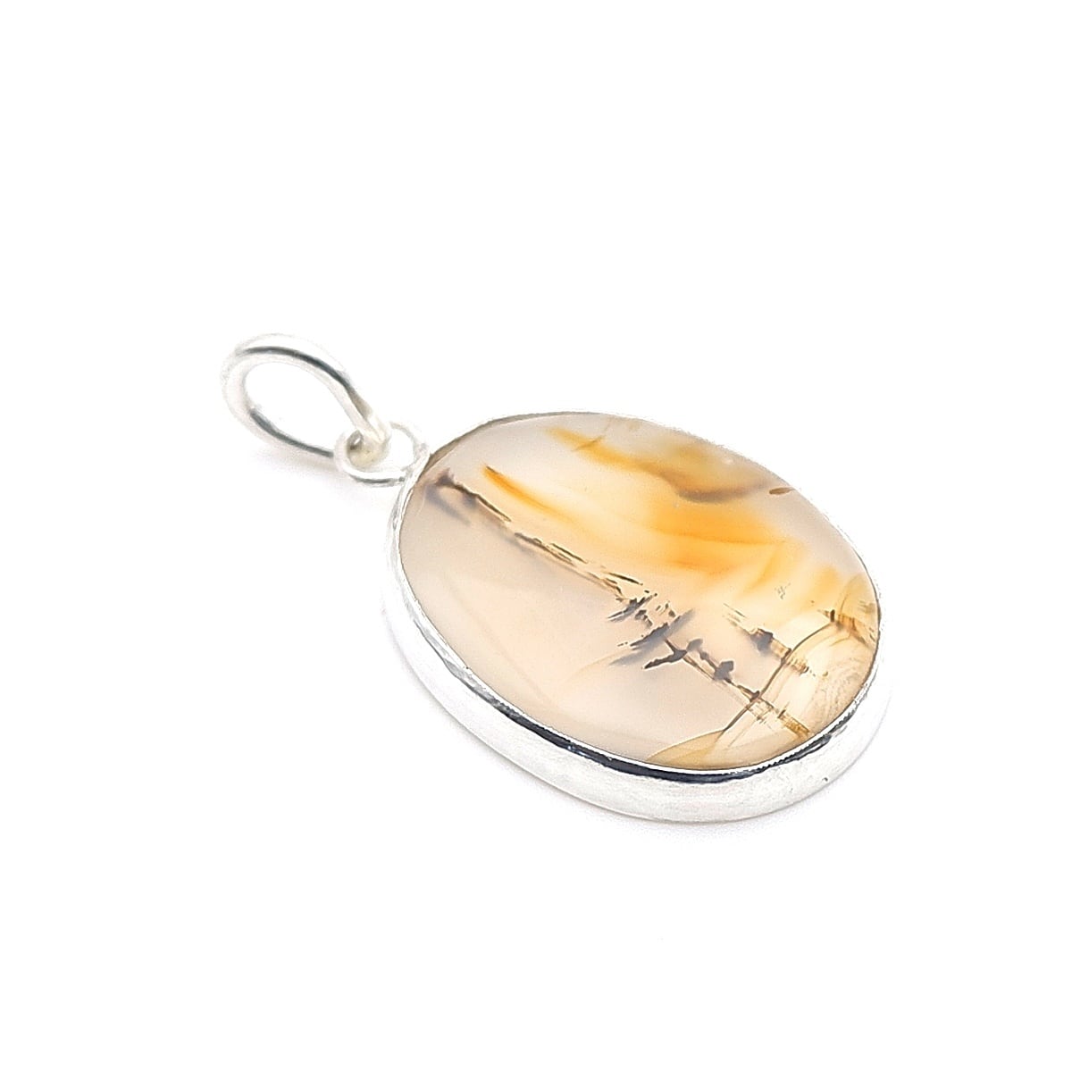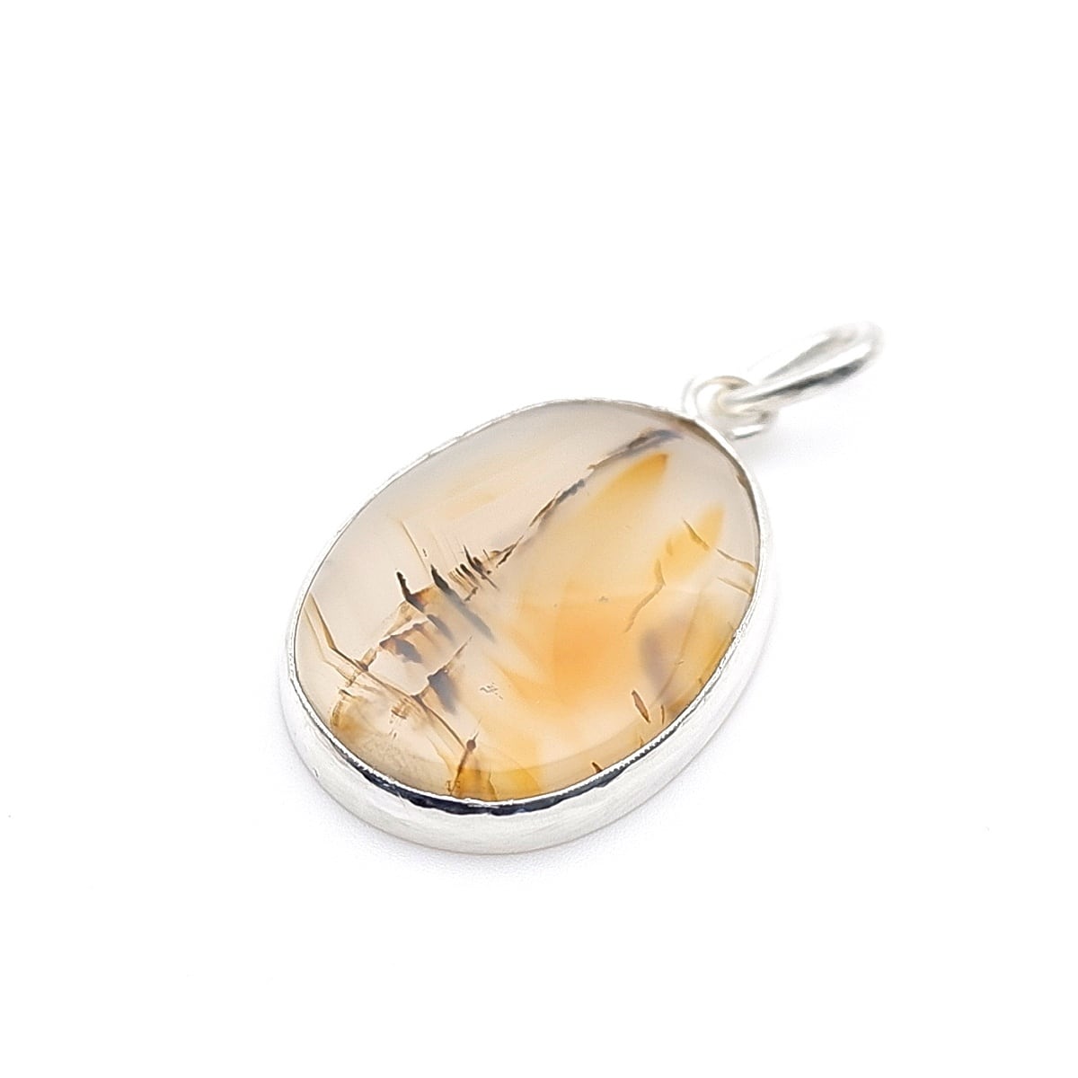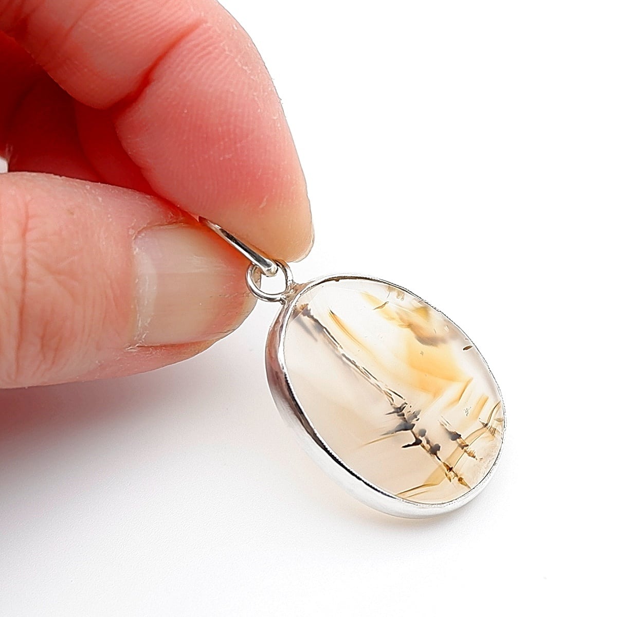 水墨画のように静謐な景色を映し込んだ、ピクチャーアゲートのペンダント。