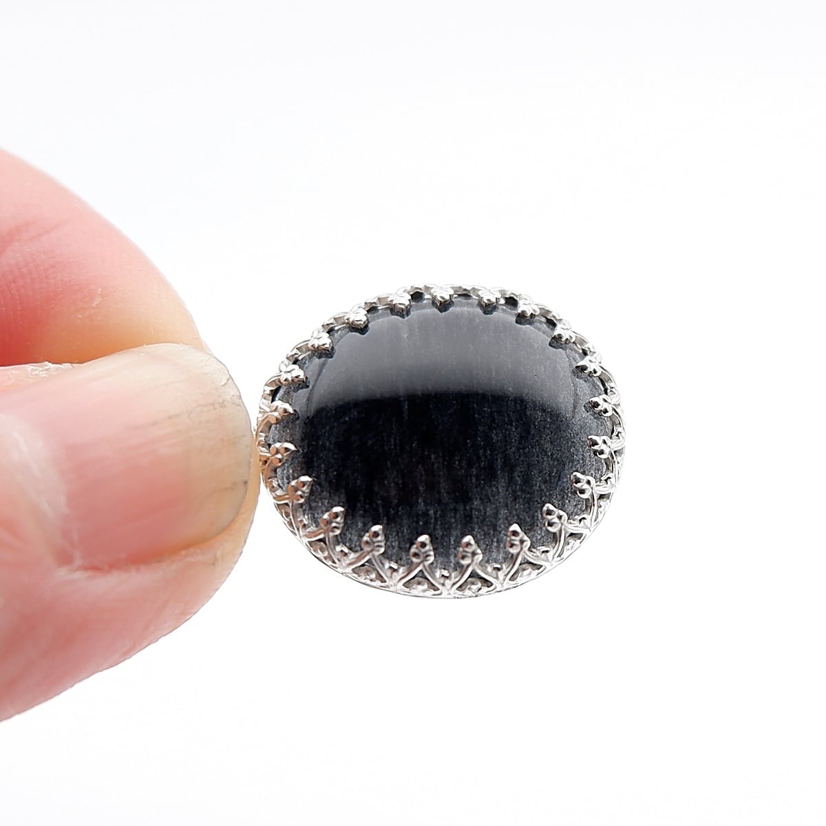 石の厚みを薄くしているので、透光性があり光に翳すと薄っすらインクルージョンが見られます。