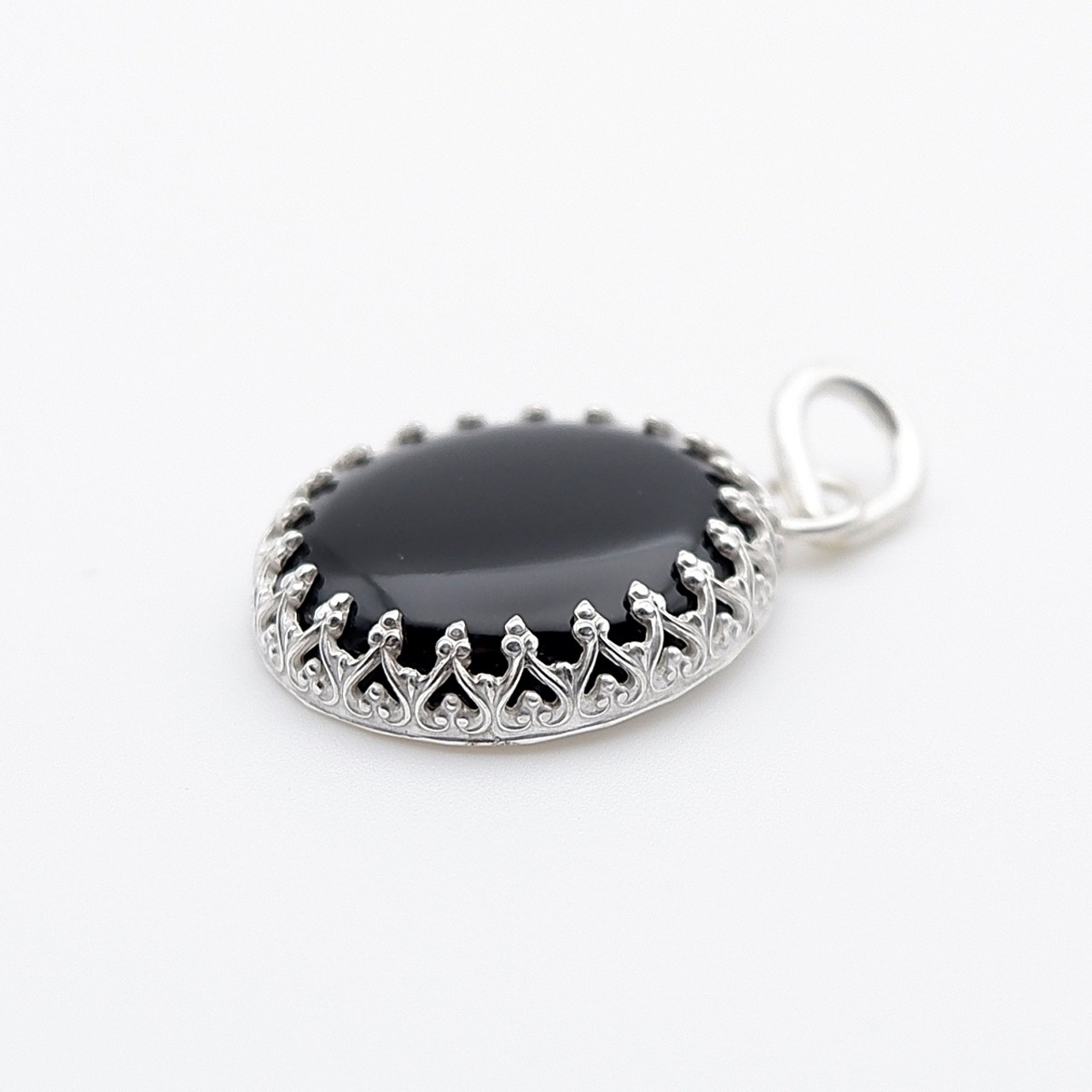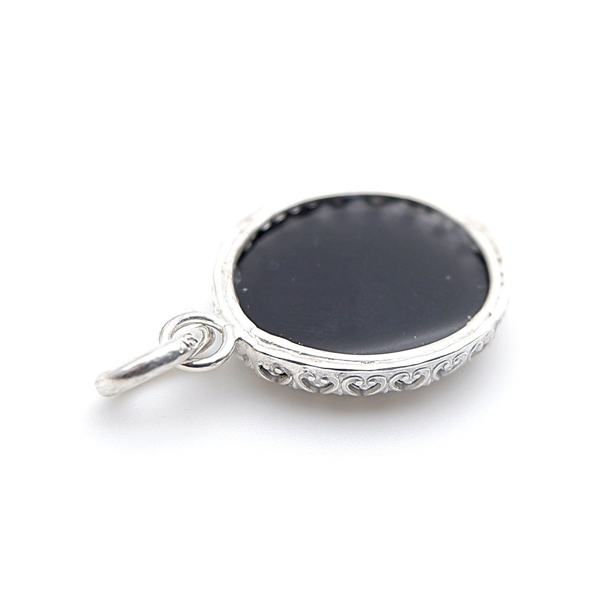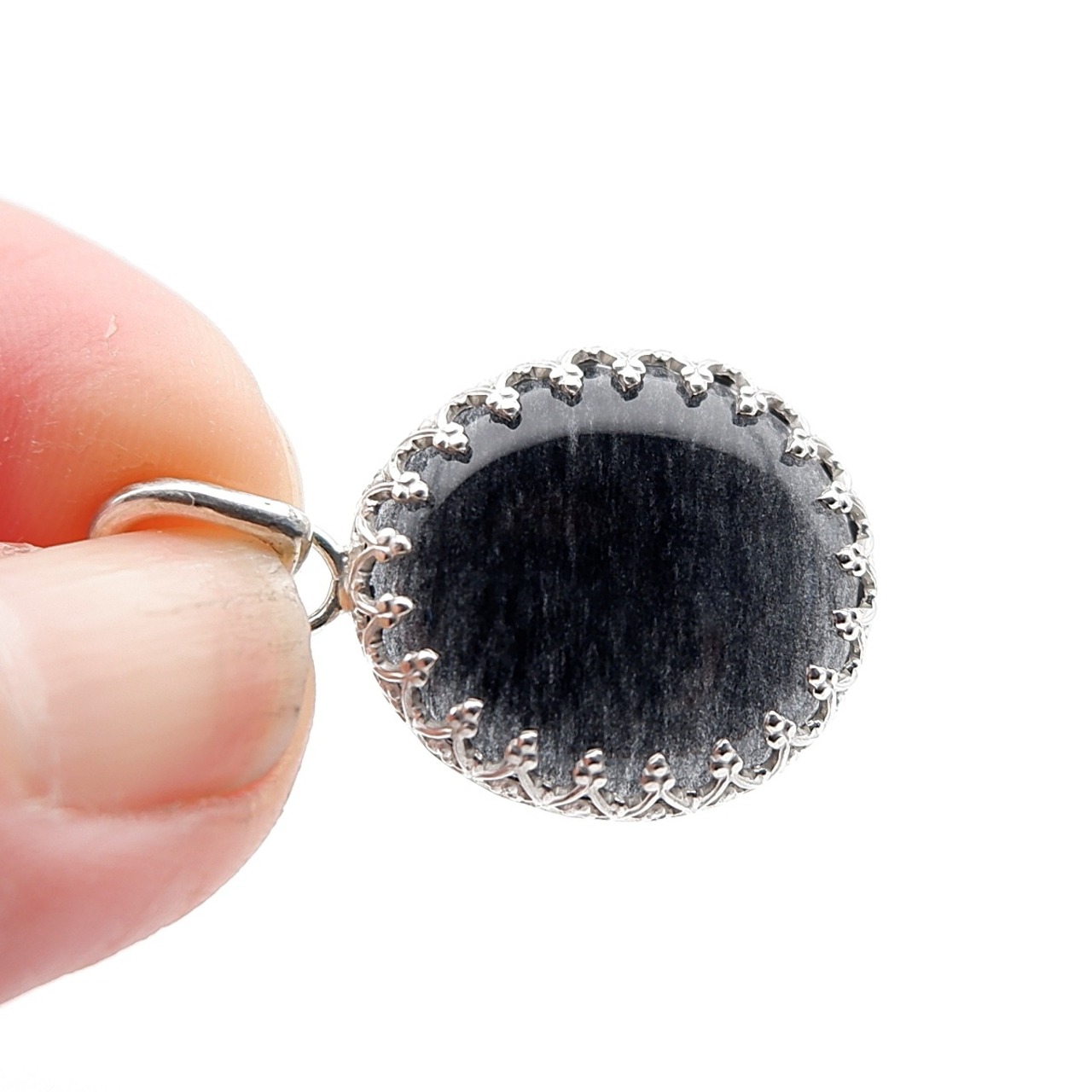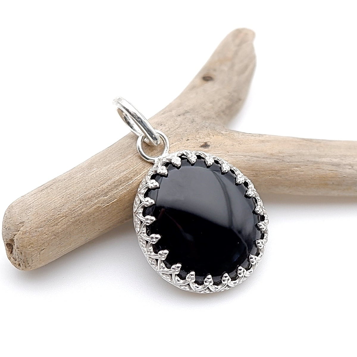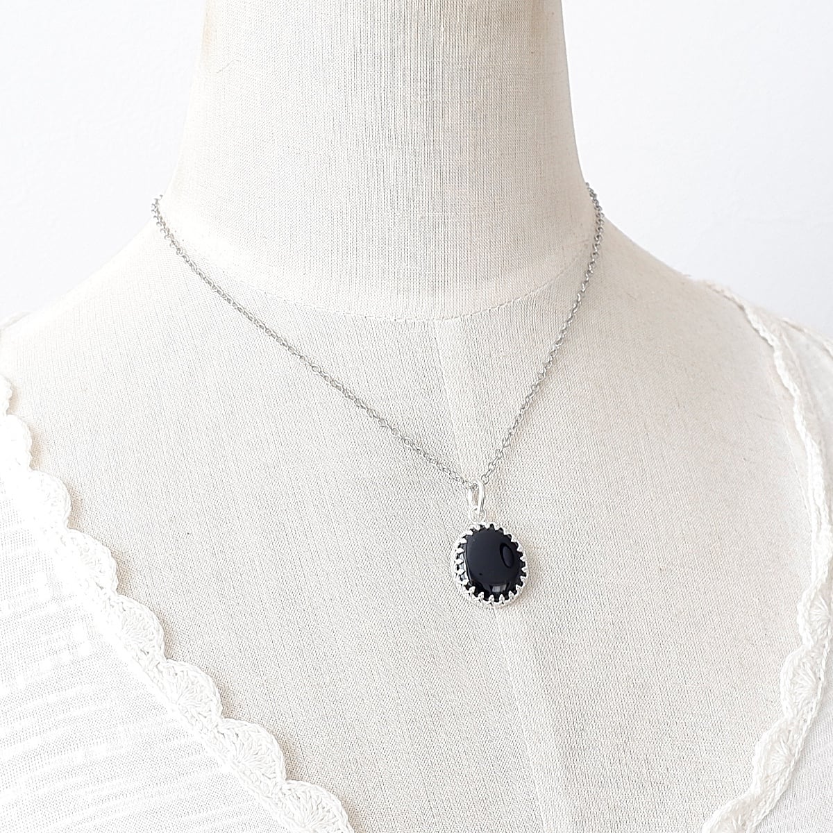 北海道・士幌町の河川で採取された十勝石の円礫を、丁寧にカット・研磨し、艶やかな漆黒のペンダントに仕立てました。