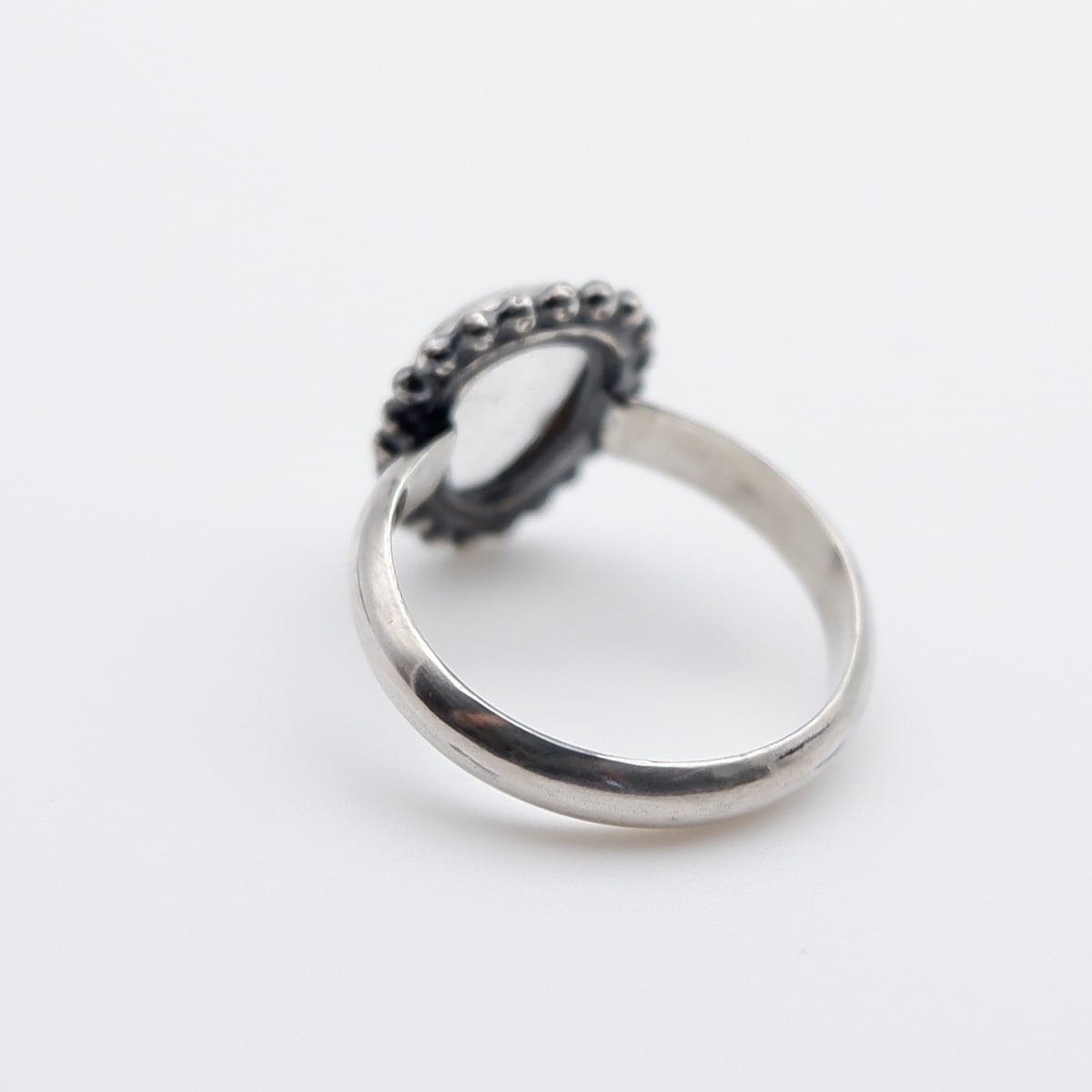 石枠に粒線をあしらったシンプルなリングに仕上げました。