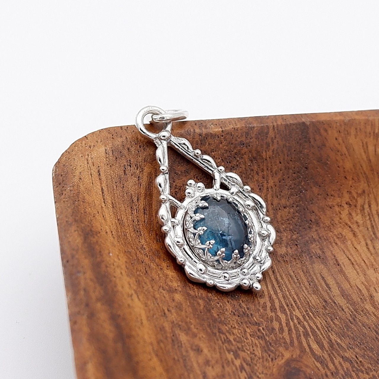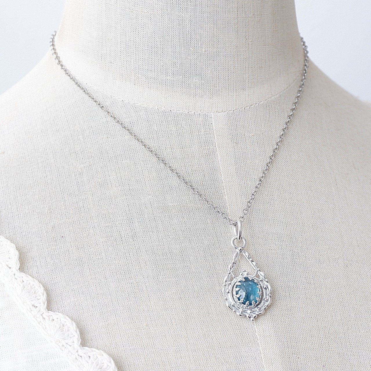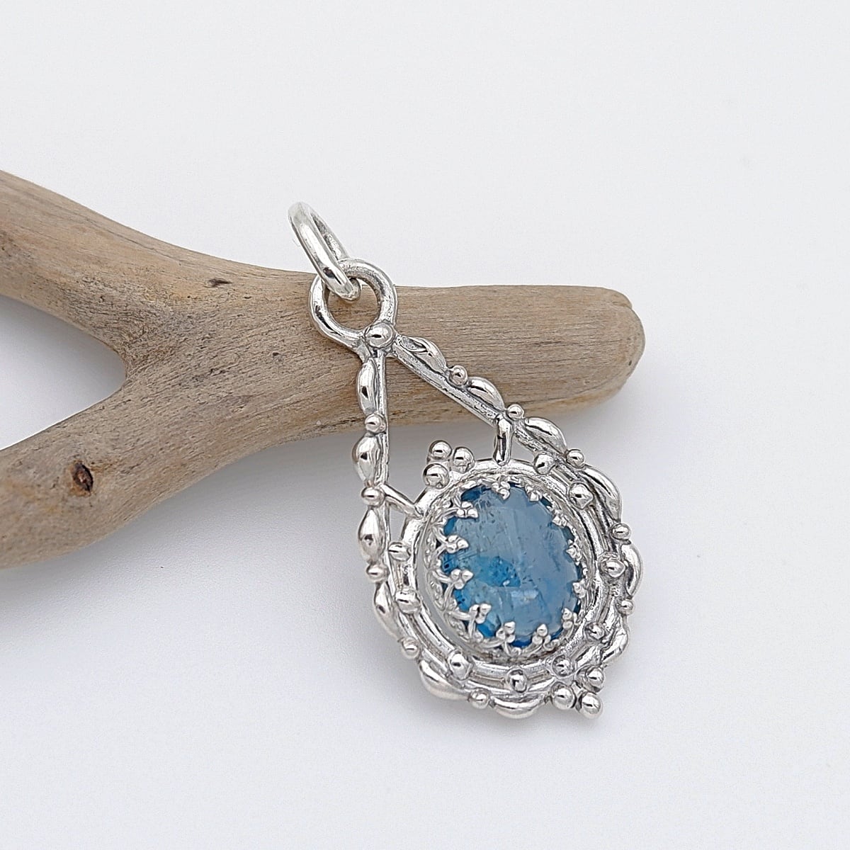 シーグリーンカイヤナイトのデザインペンダント ~蒼雨の追憶~ 天然石アクセサリー 一点物