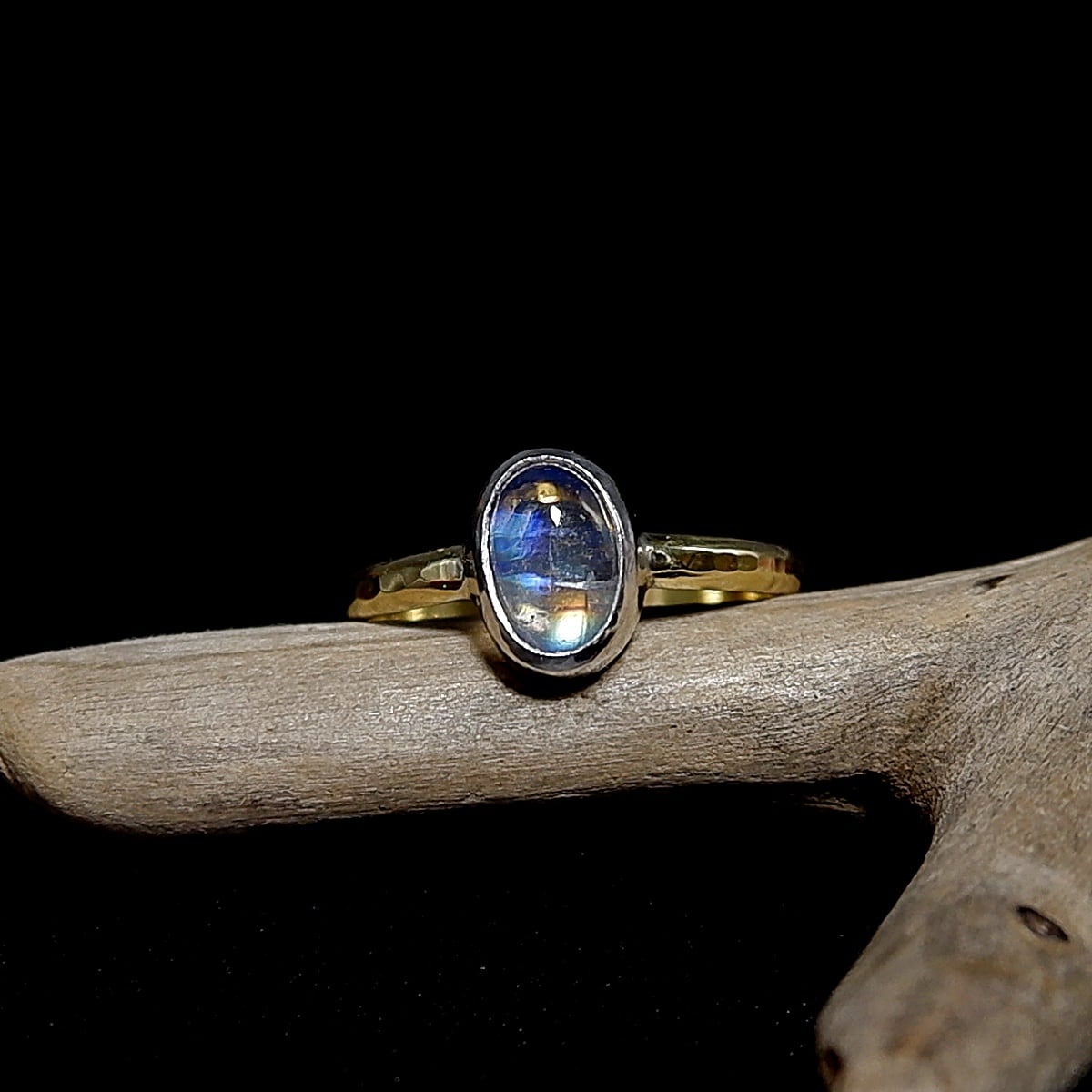 レインボームーンストーンのリング 11.5号 ~真鍮と銀の指輪~ 天然石アクセサリー 一点物