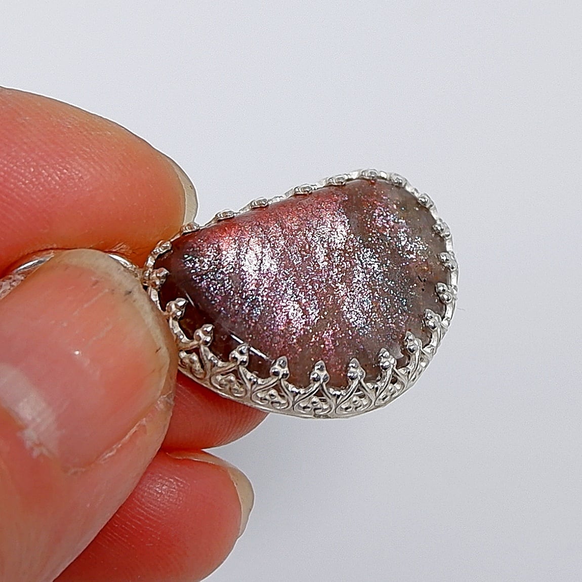 タンザニア産パープルヘイズサンストーンの飾り枠ペンダント 2~幻惑の輝き~ 天然石アクセサリー ペンダントトップ 一点物 macari