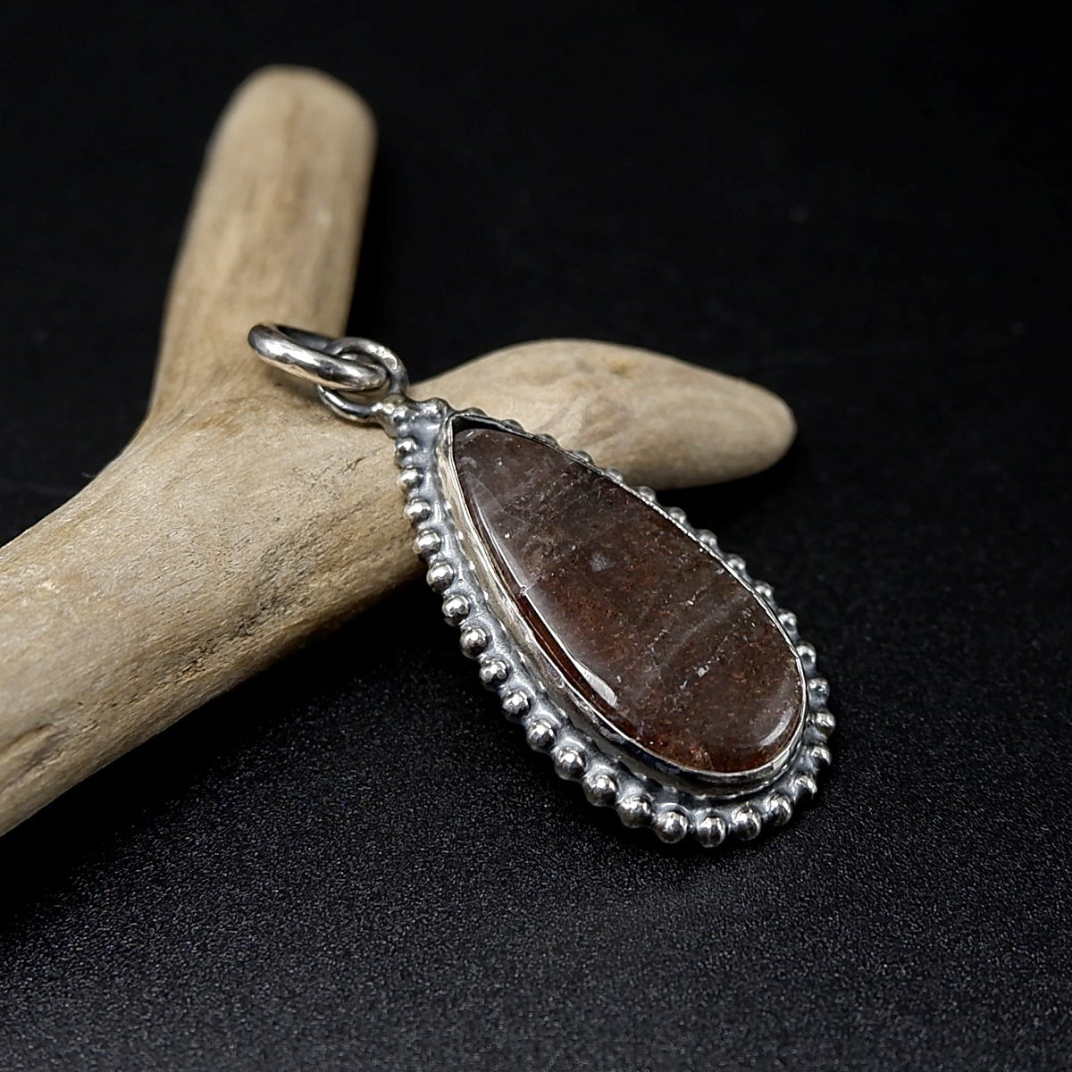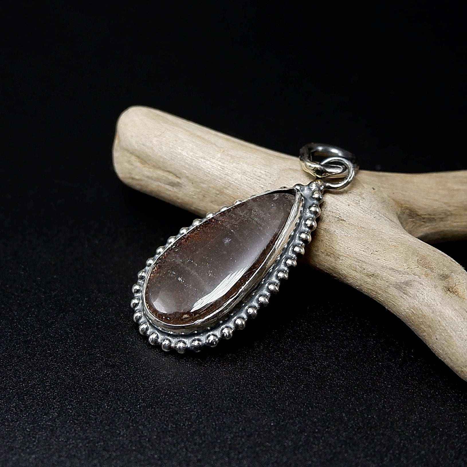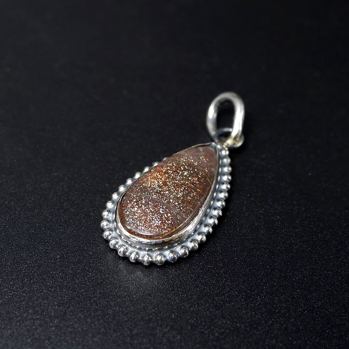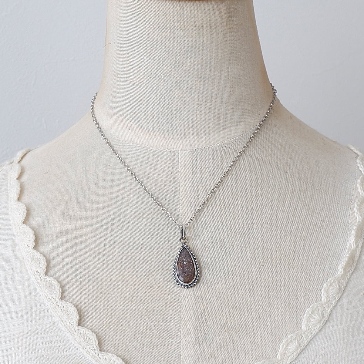 タンザニア産パープルヘイズサンストーンの粒枠飾りペンダント ~繊細な煌めき~ 天然石アクセサリー ペンダントトップ 一点物 macari