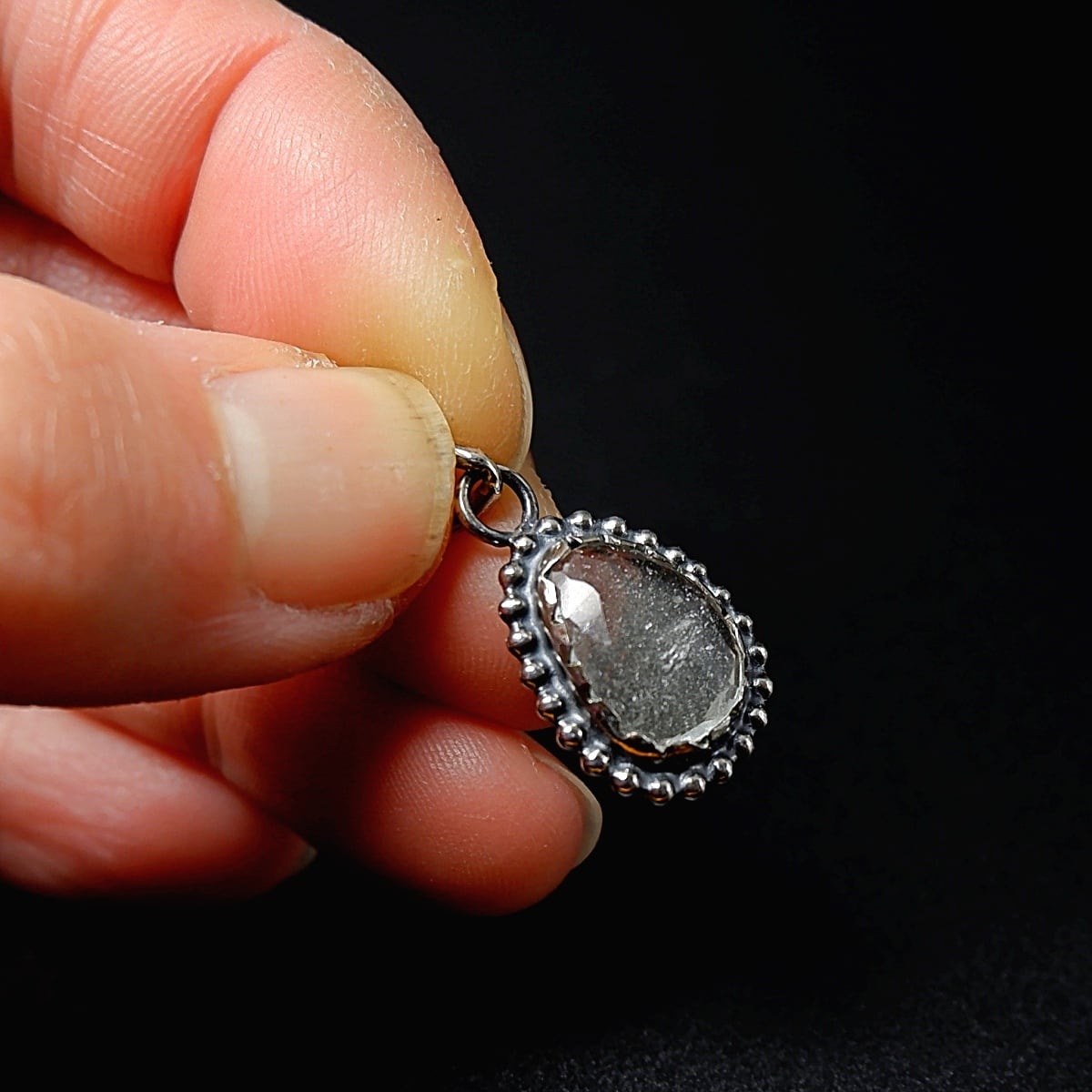 石枠に粒線をあしらったシンプルなペンダントに仕上げました。