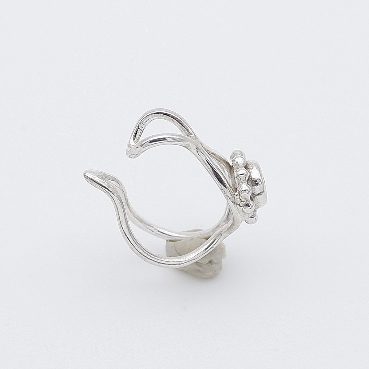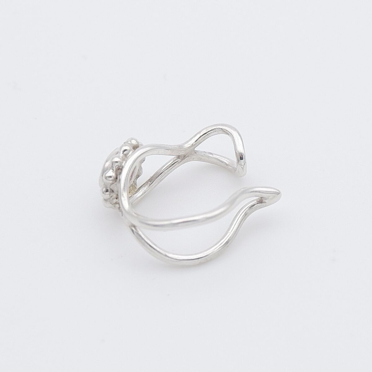銀線で仕上げたイヤーカフに、ちょこんと留めました。