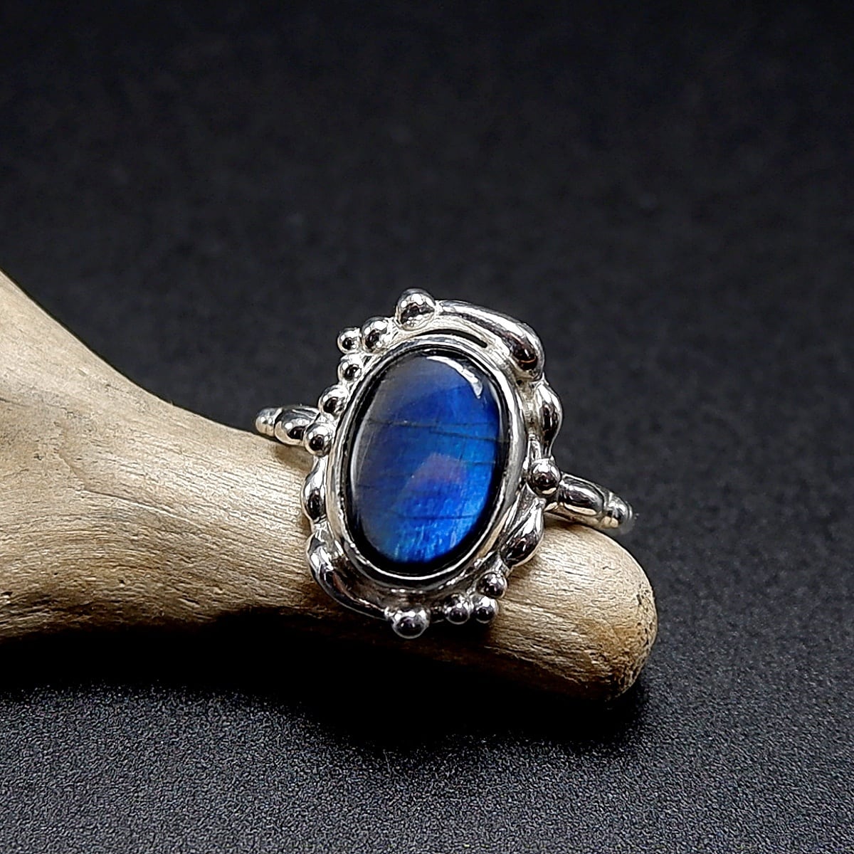 スペクトロライトのリング 約12号 ~ブルーフラッシュ~ 天然石アクセサリー 一点物 指輪 一点物