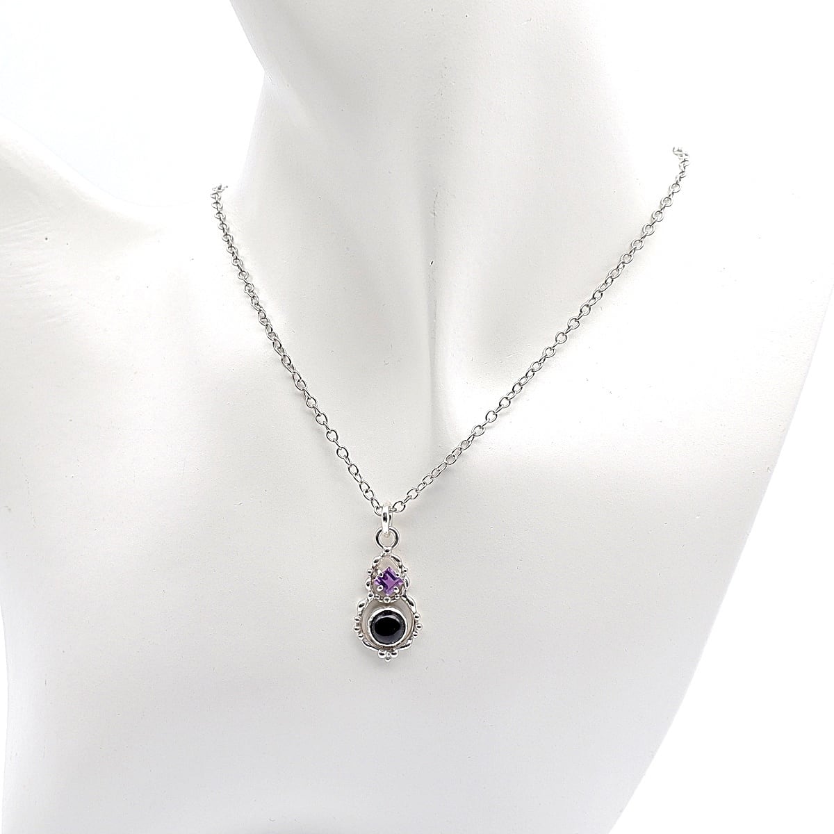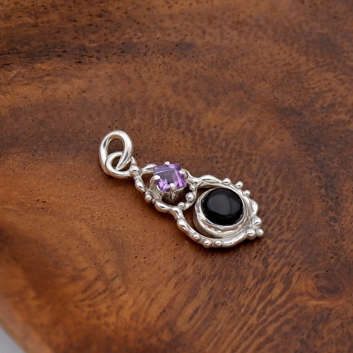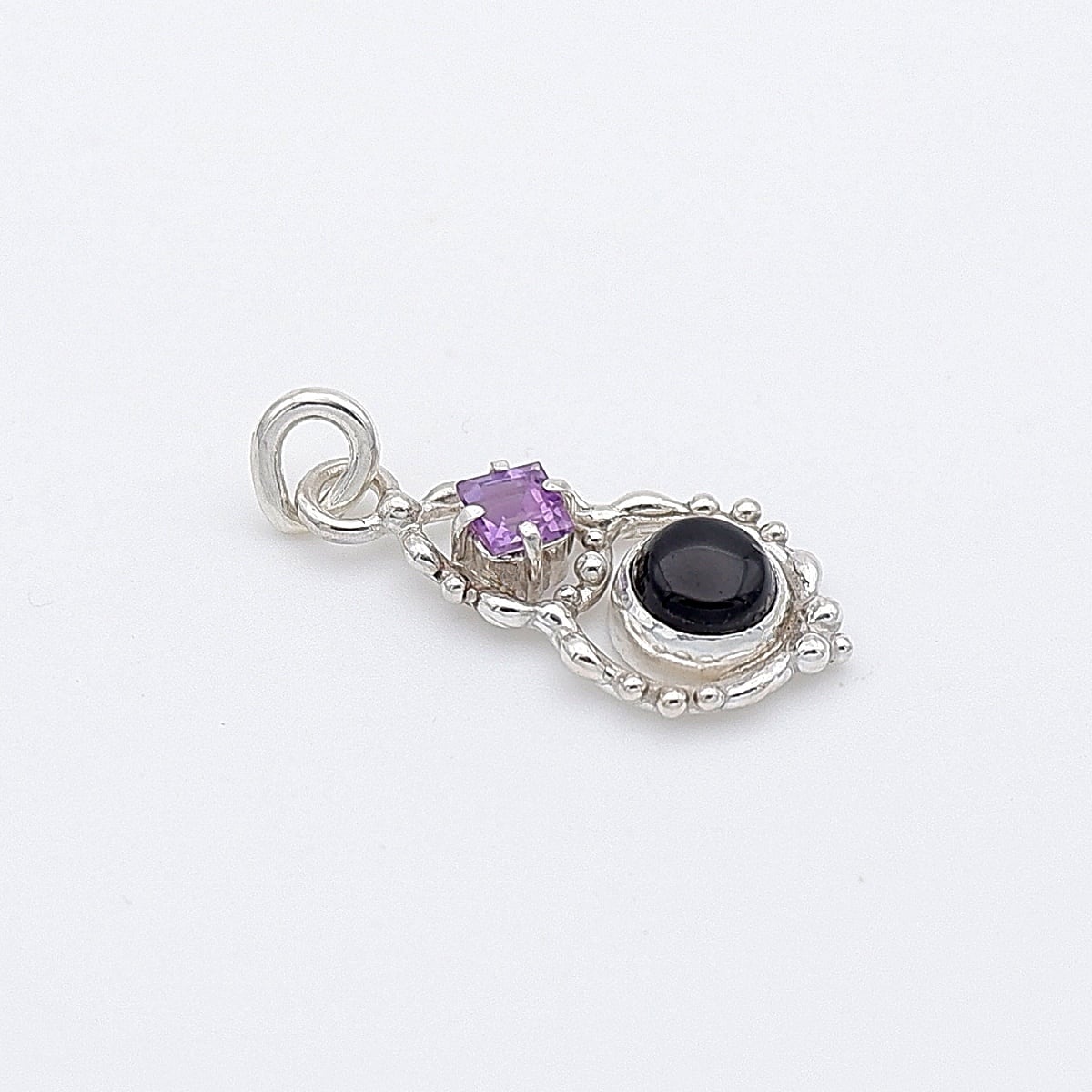 宝石質のスクエアカット・アメジストを添えたデザインペンダントです。