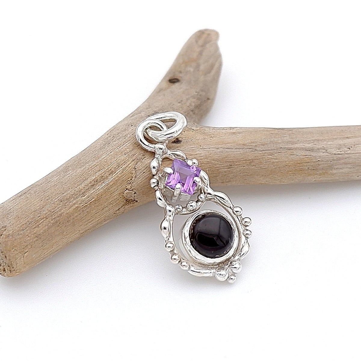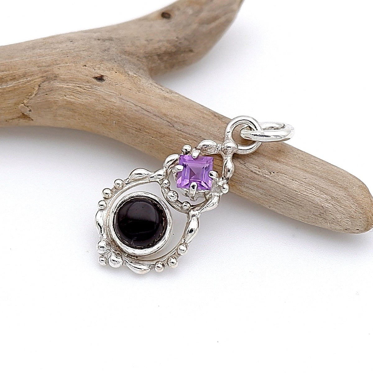 モリオンとアメジストのデザインペンダント ~守りの石~ 天然石アクセサリー 一点物 macari