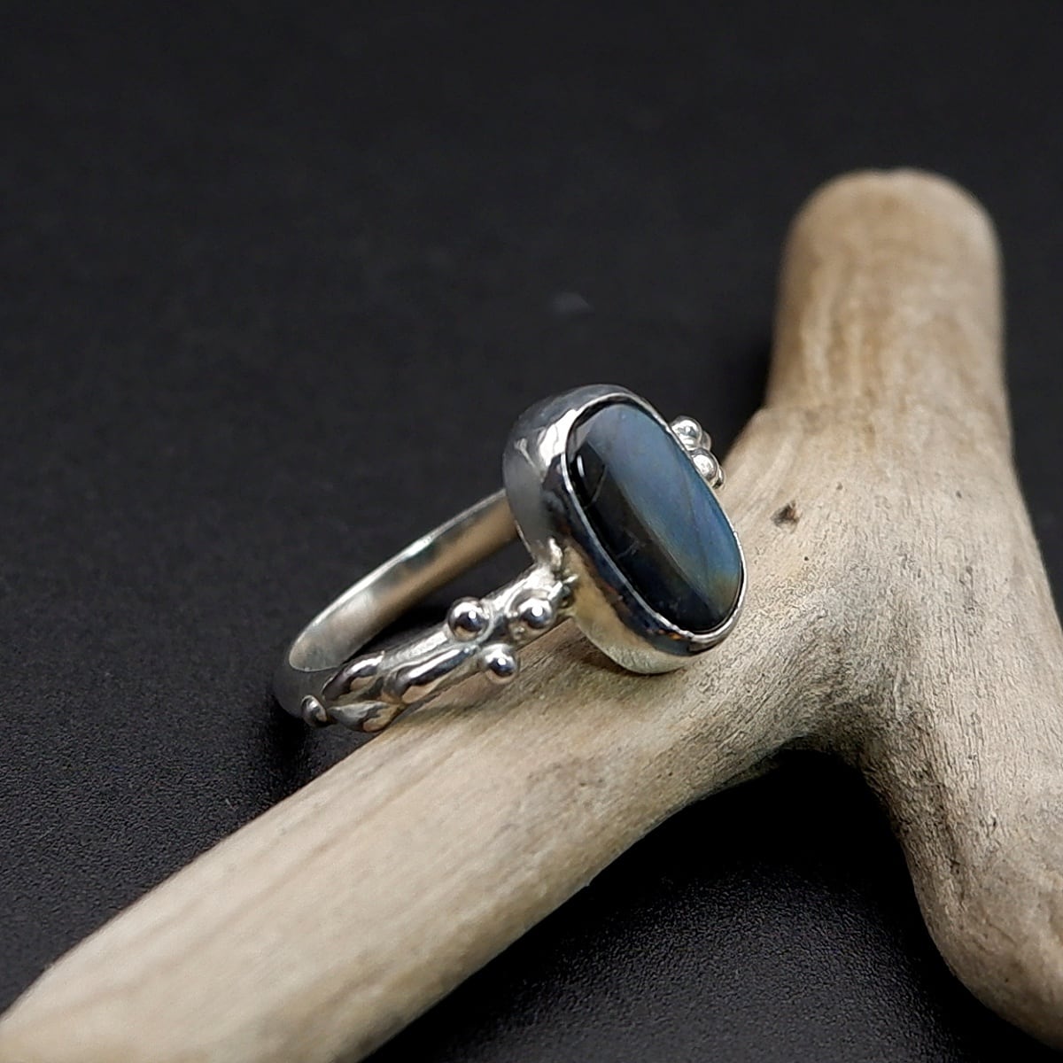 スペクトロライトの粒飾りリング8.5号 ~幻想的な輝き~ 天然石アクセサリー 一点物