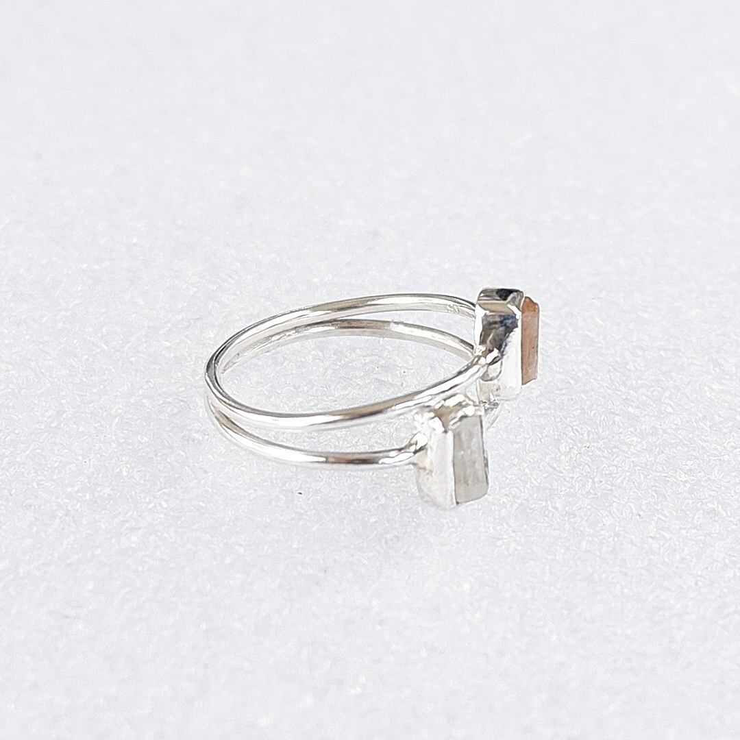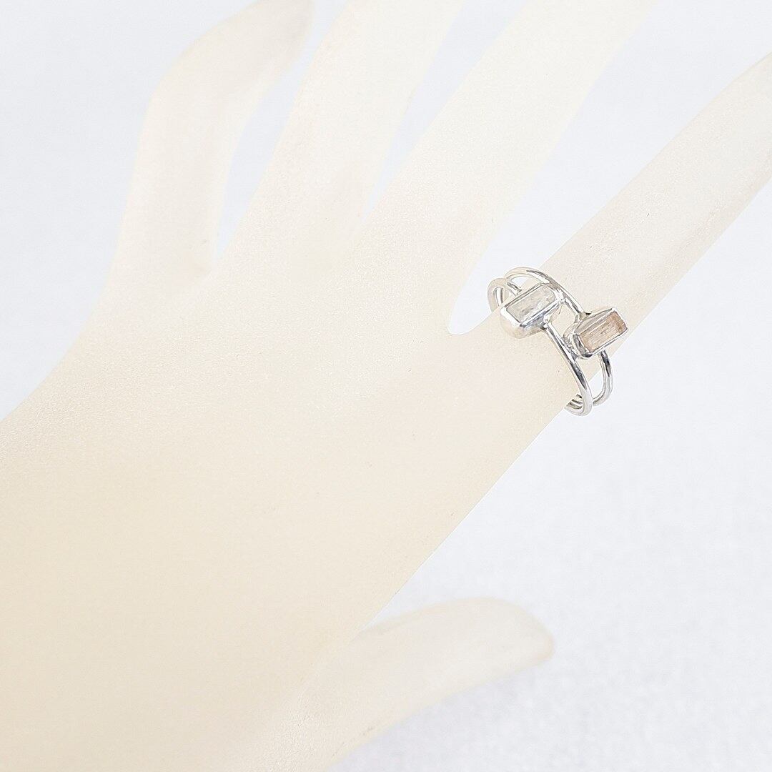 フェナカイト原石とトルマリン原石の2連風リング 12.5号 天然石アクセサリー 一点物