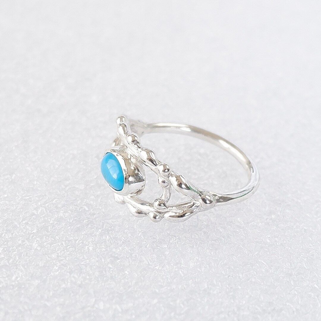 鮮やかなブルーの発色が美しいスリーピングビューティー・ターコイズを、デザインリングに飾りました。