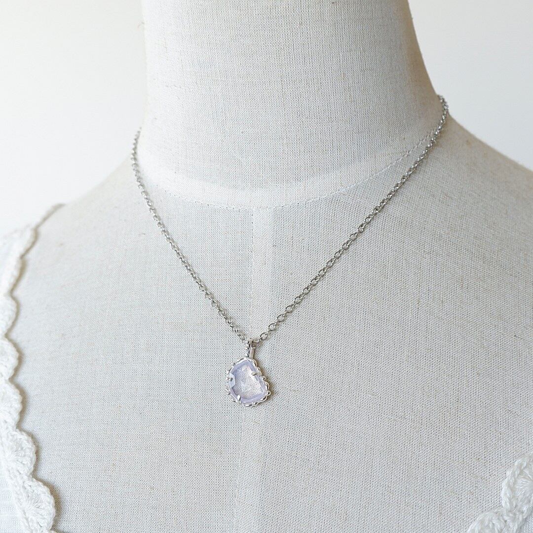 透明感のあるローズクォーツに青みを足したような、不思議な色合いが美しいラベンダークォーツを粒飾りのペンダントに仕上げました。