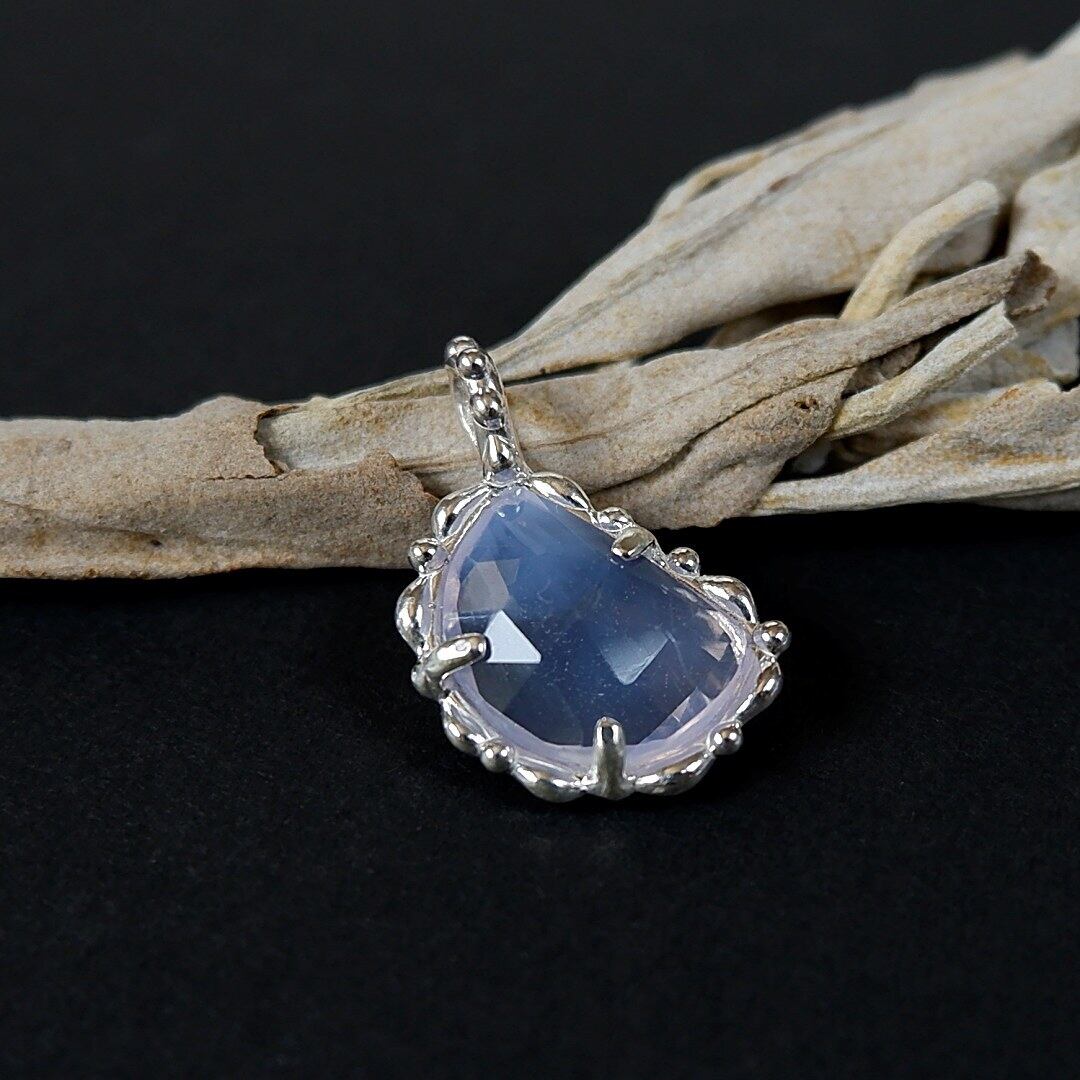 ローズカットを施されたフリーシェイプのラベンダークォーツが、キラキラと繊細な輝きを放ちます。