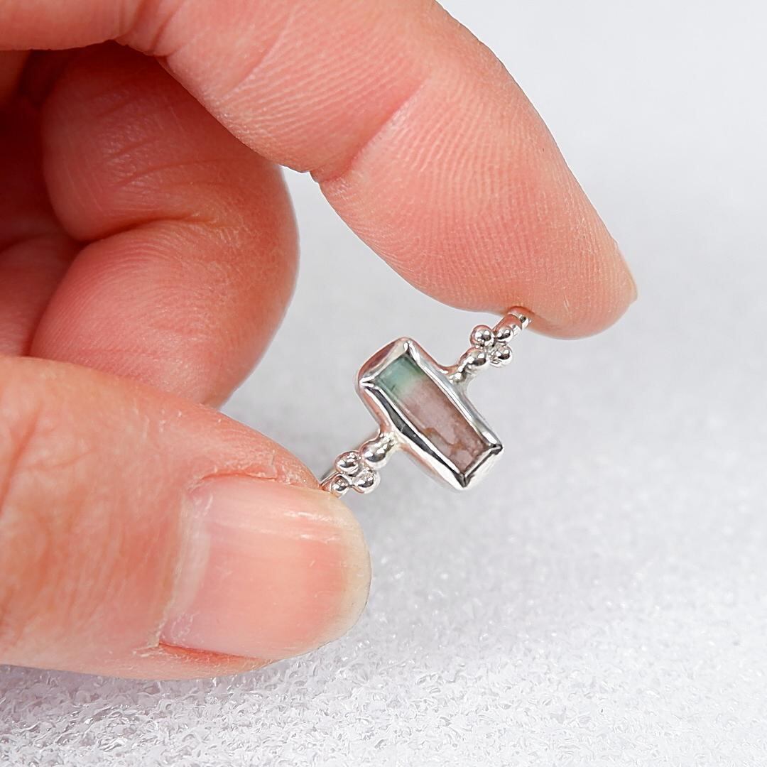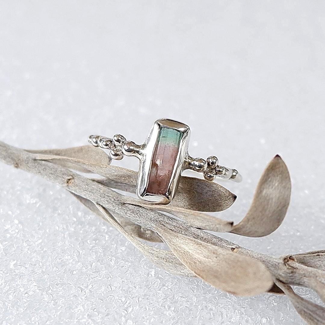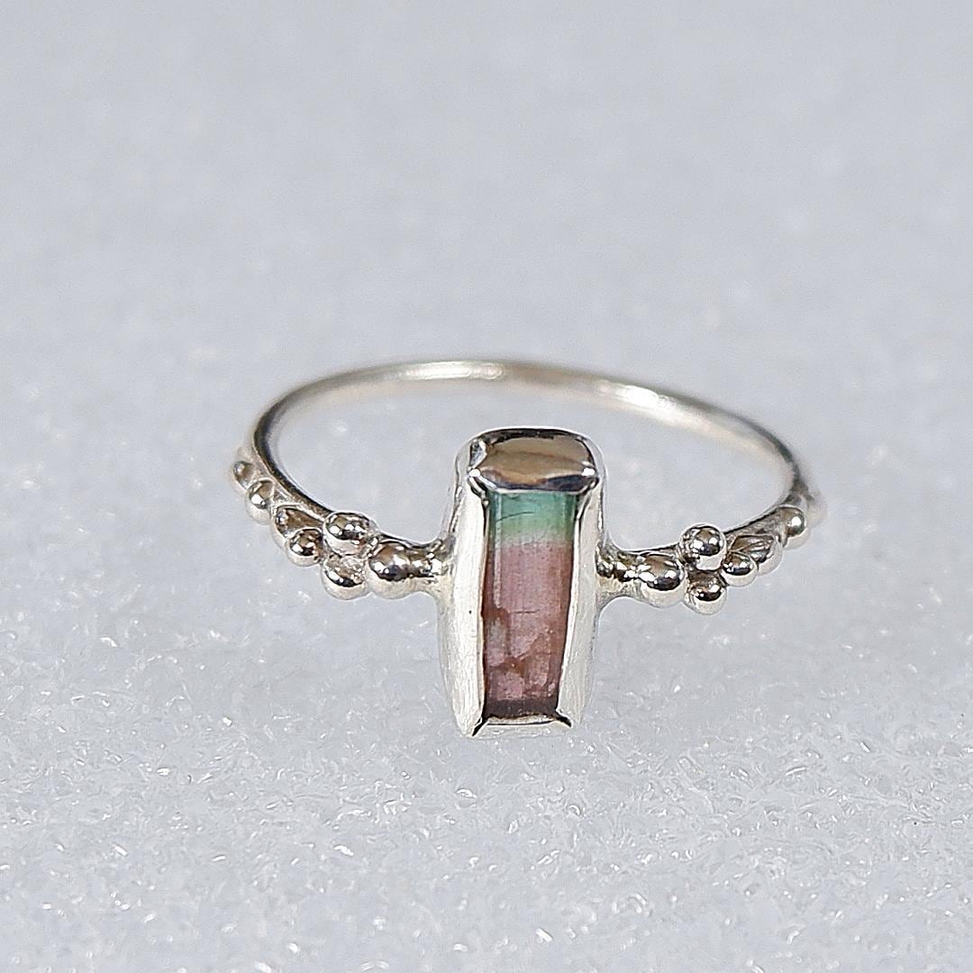 ~結晶を指に飾る~ バイカラートルマリン原石の粒飾りリング 12号 天然石アクセサリー 1点物